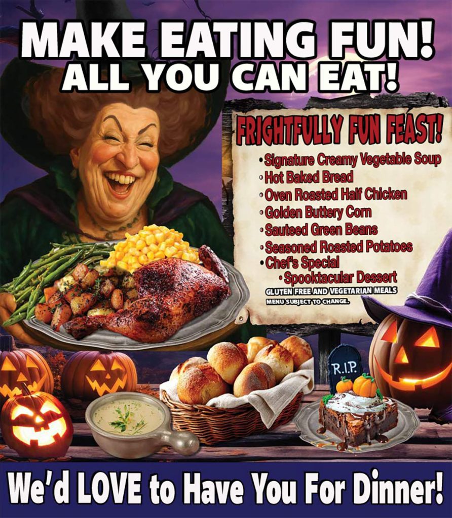 Ghouls and goblins of every age – your Halloween night awaits in our dazzling Broadway-style Halloween Spooktacular! With a huge cast of performers, specialty acts and musicians, this multi-million-dollar production is performed nightly beginning September 26th through October 31st in the state-of-the-art 700-seat Legacy Dinner Theater.